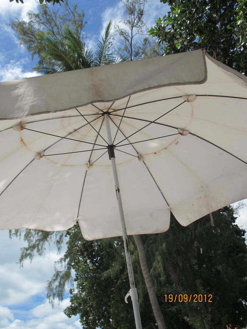 Schirm für uns am Strand nach Termin mit Manager