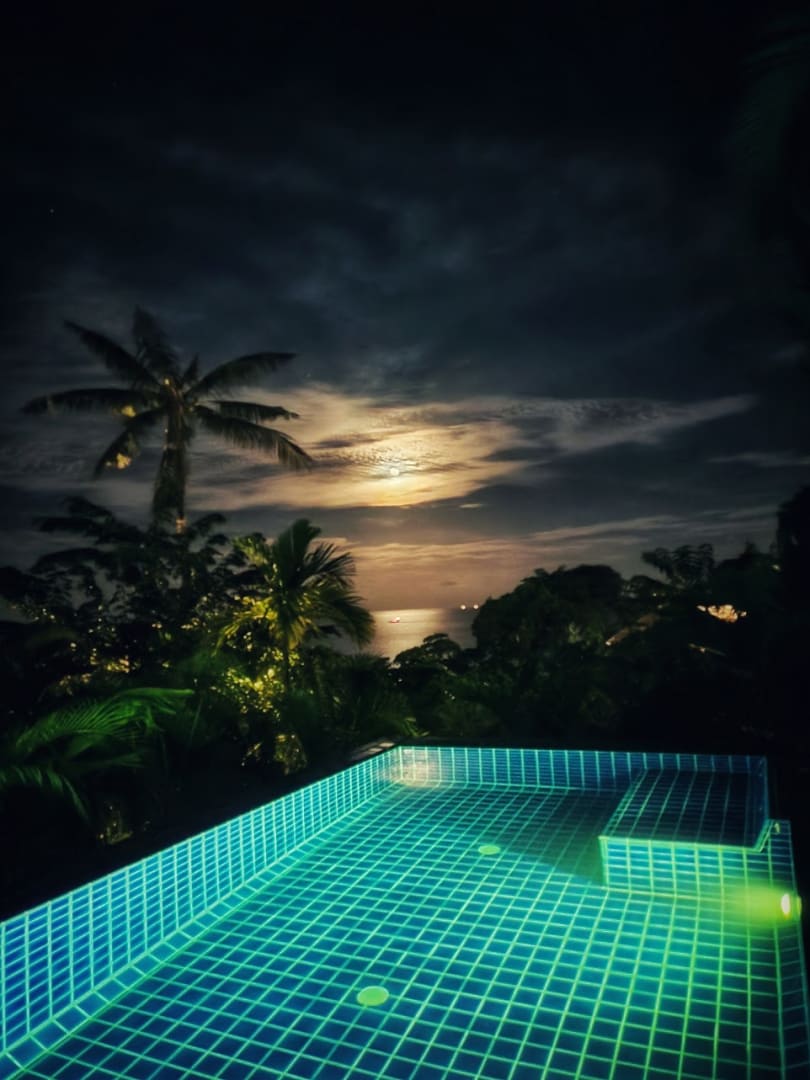 Beleuchteter private Pool bei Nacht im Mondschein