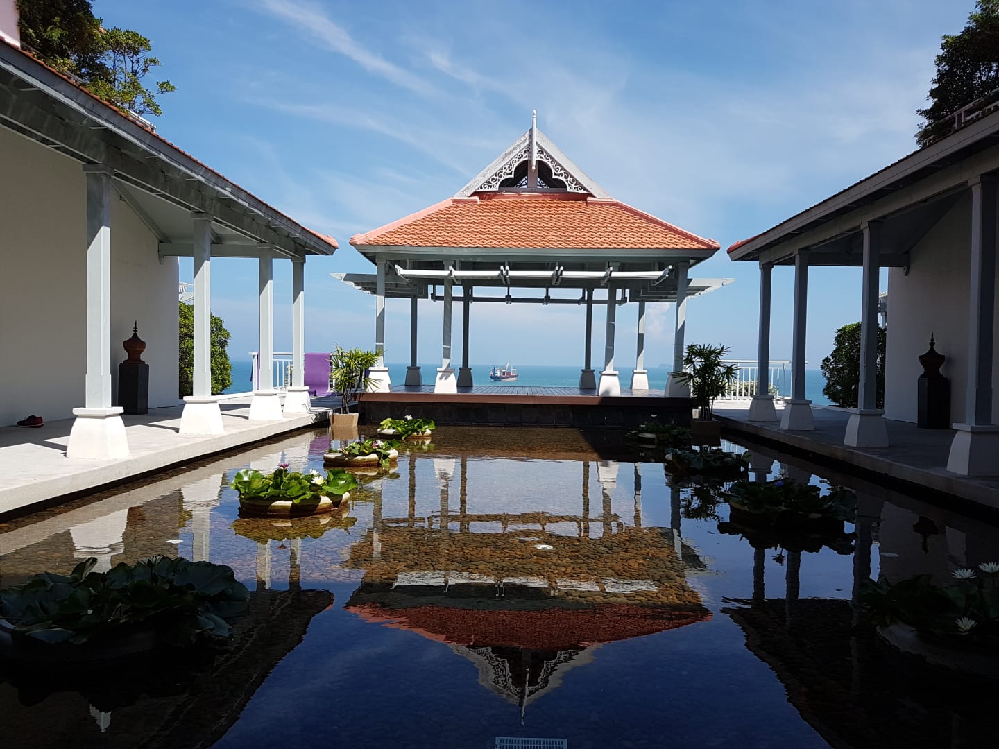 Blick vom Wellness-Bereich - unter dem Pavillion fand Yoga statt