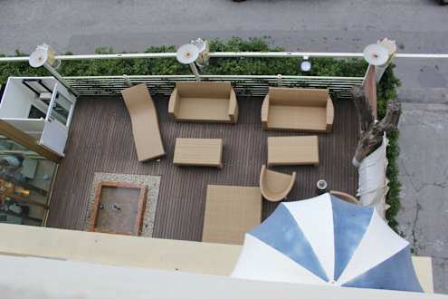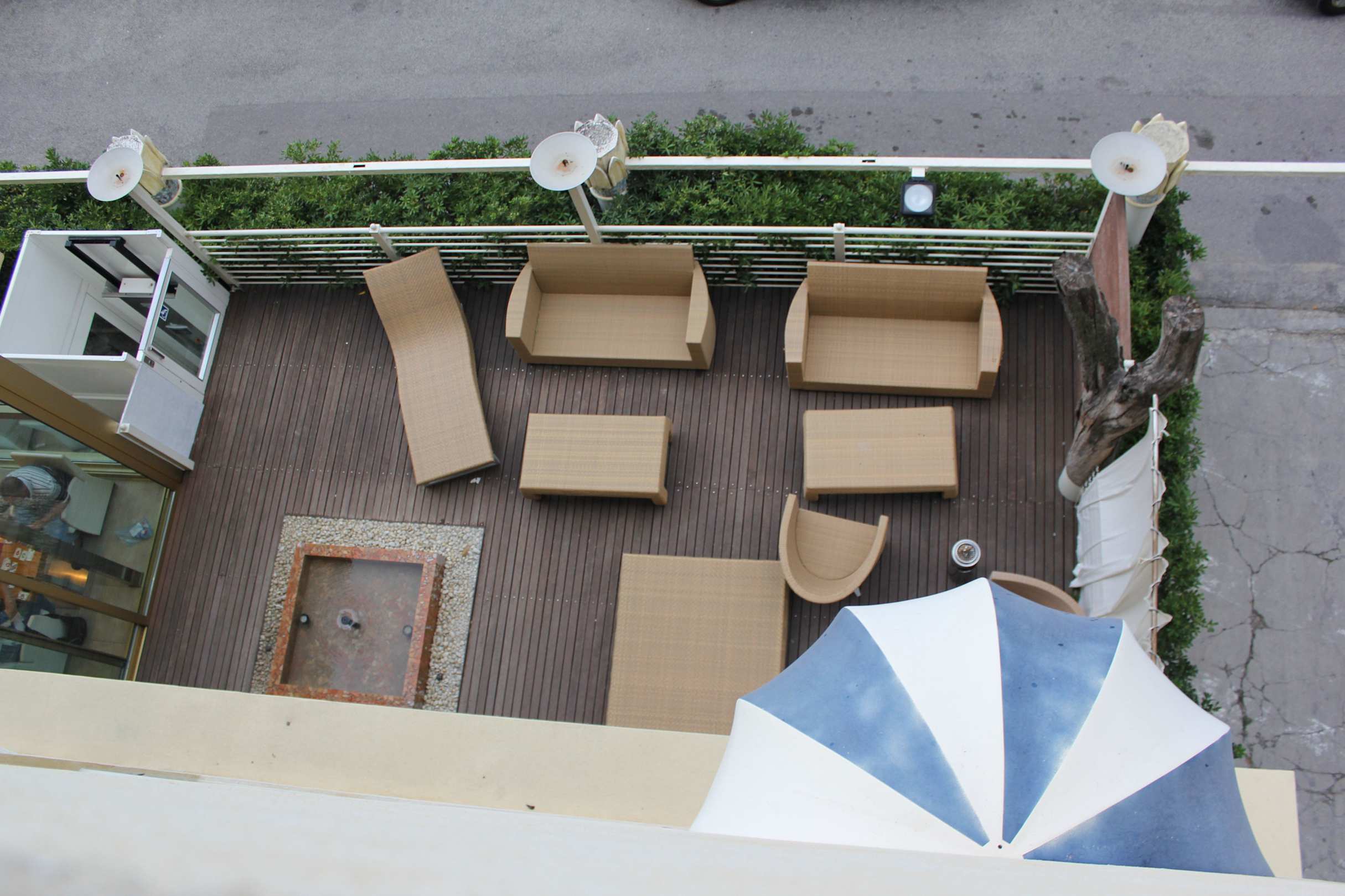 Ausblick vom Balkon auf den Außenbereich