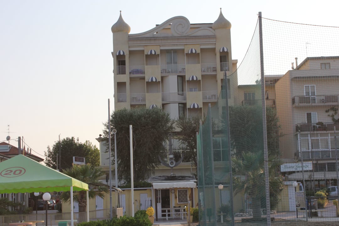 Das Hotel vom Strand aus betrachtet