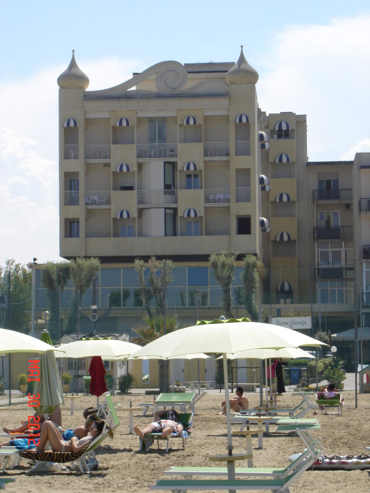Blick vom Strand auf Hotel