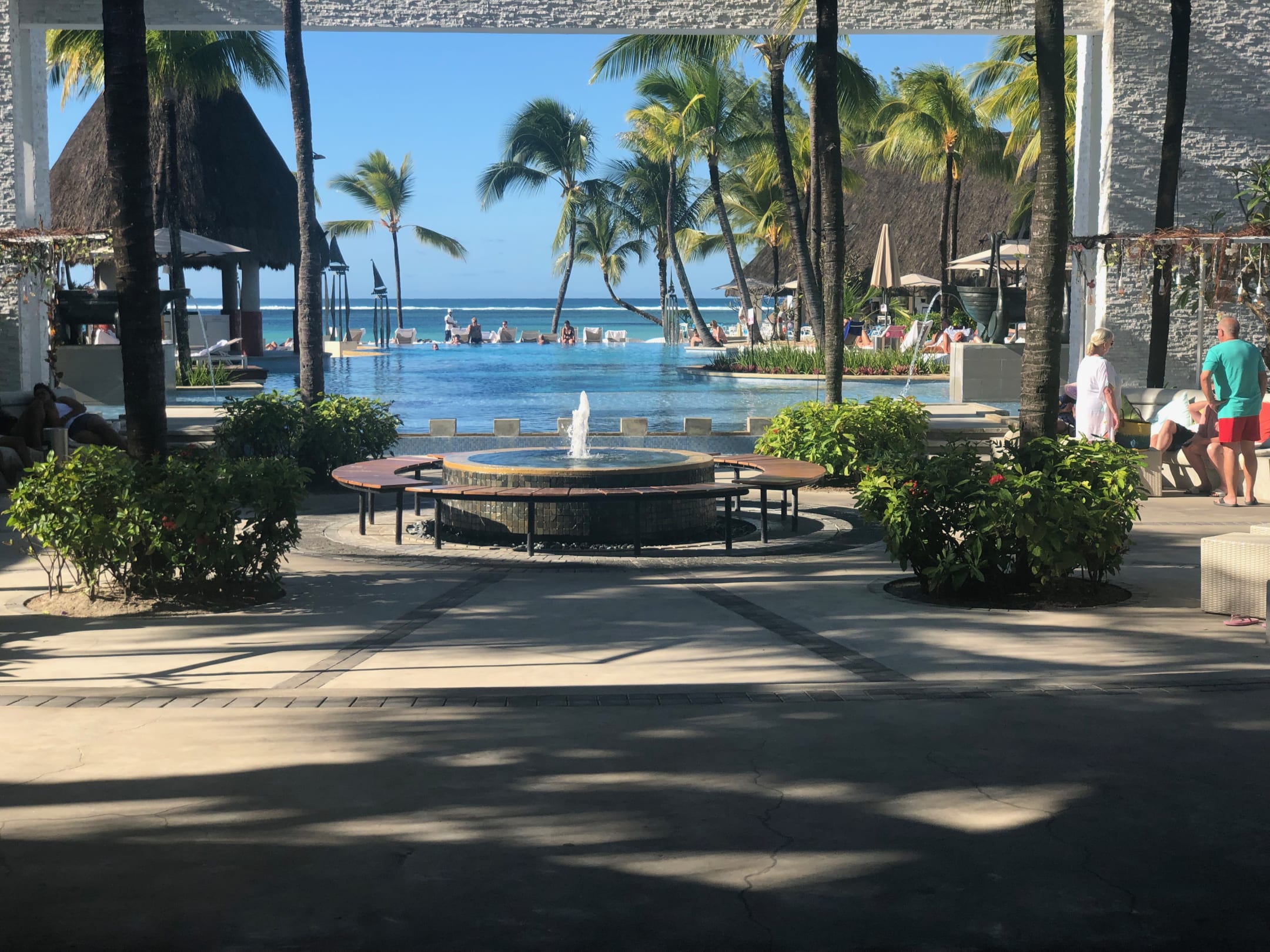 Der Blick von der Lobby in Richtung Pool und Meer