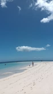 Das Hotel liegt direkt am Strand. Zur linken Seite kann man Richtung des Dorfes Belle Mare am Strand spazieren gehen. Dort findet man diese weißen Strandabschnitte von ca 4 km Länge.