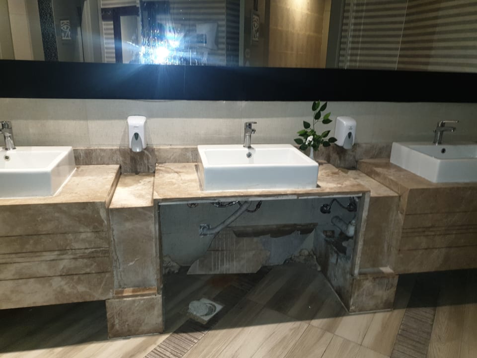 Das Waschbecken bei den Toilette neben dem Restaurant. Defekte Waschbecken.
