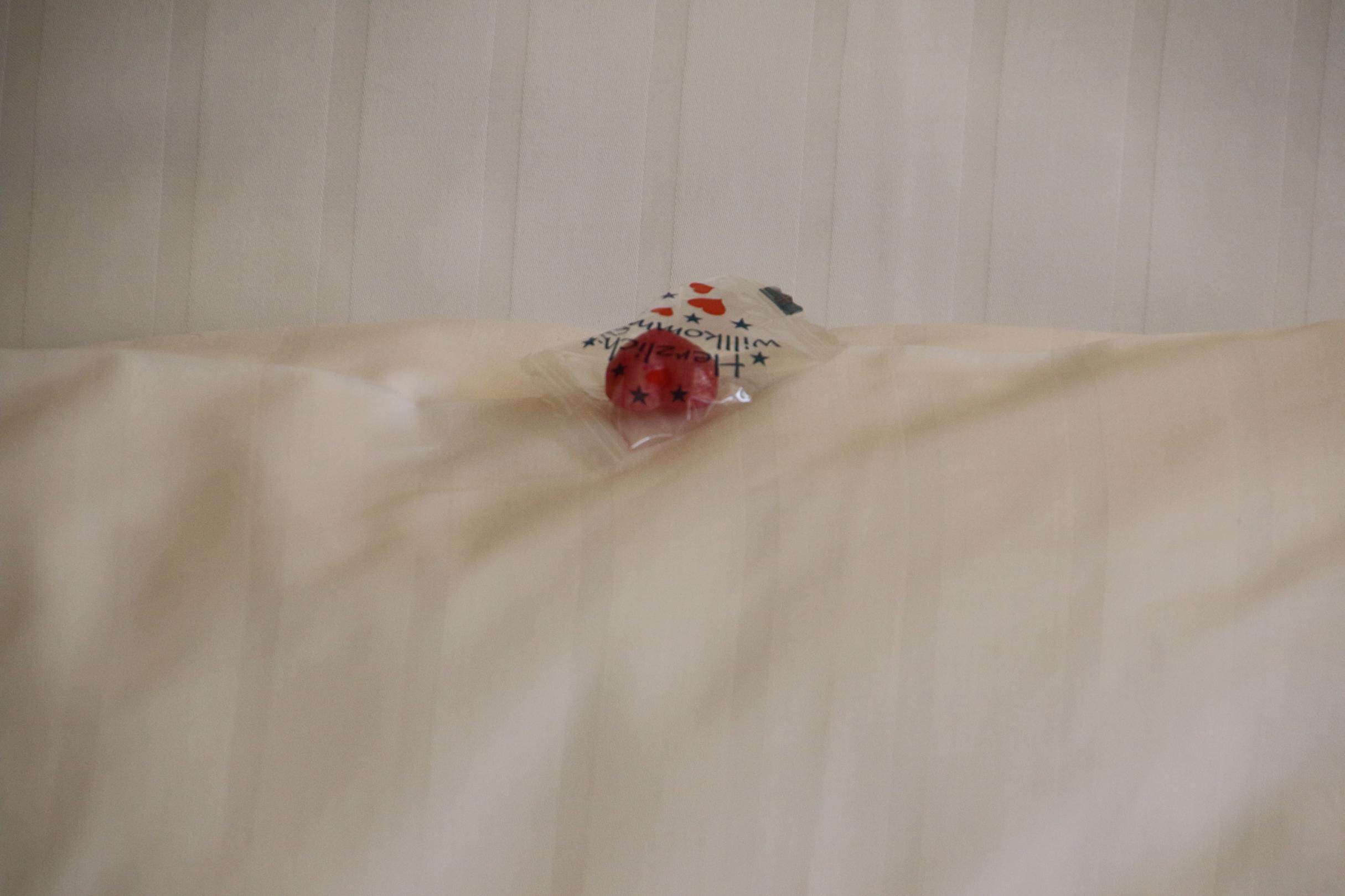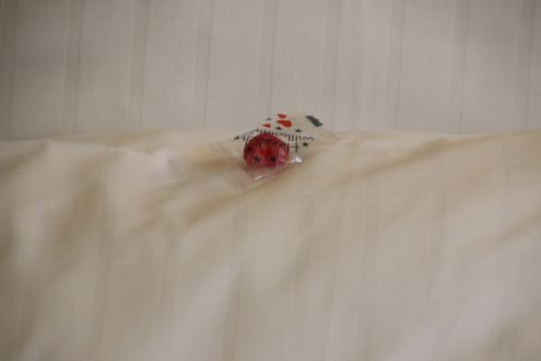 Guddi auf dem Bett - nur eines trotz Doppelbett!!