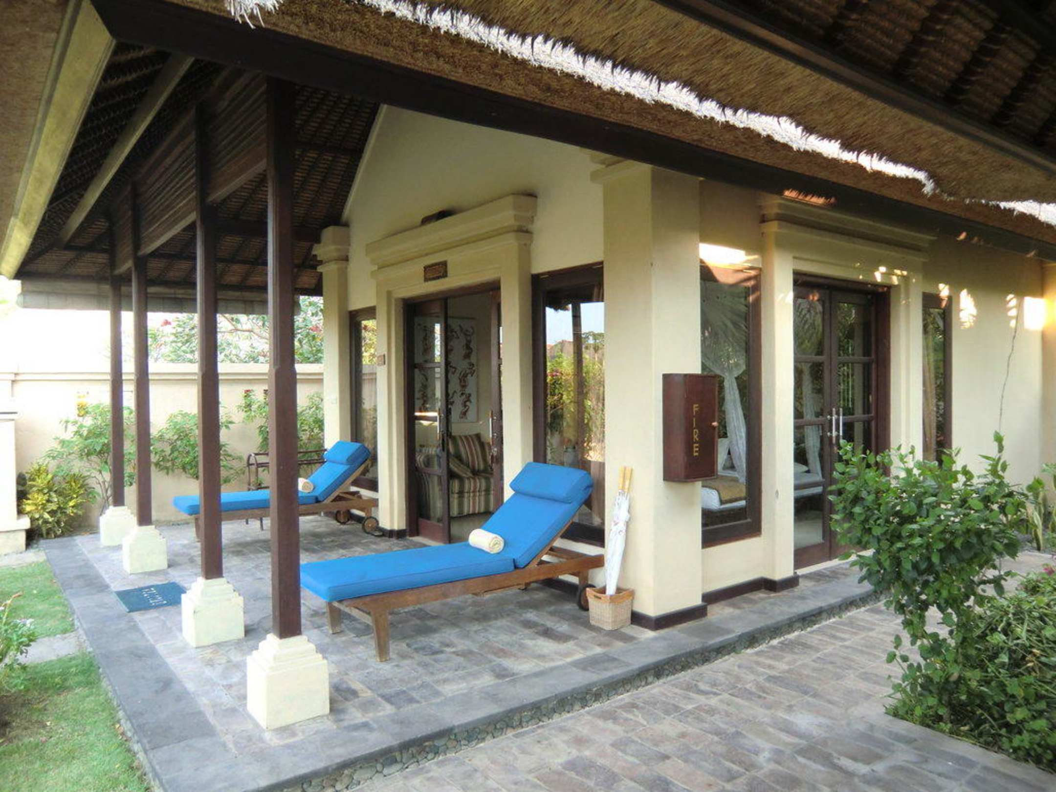Bungaloweingang mit Privatliegen