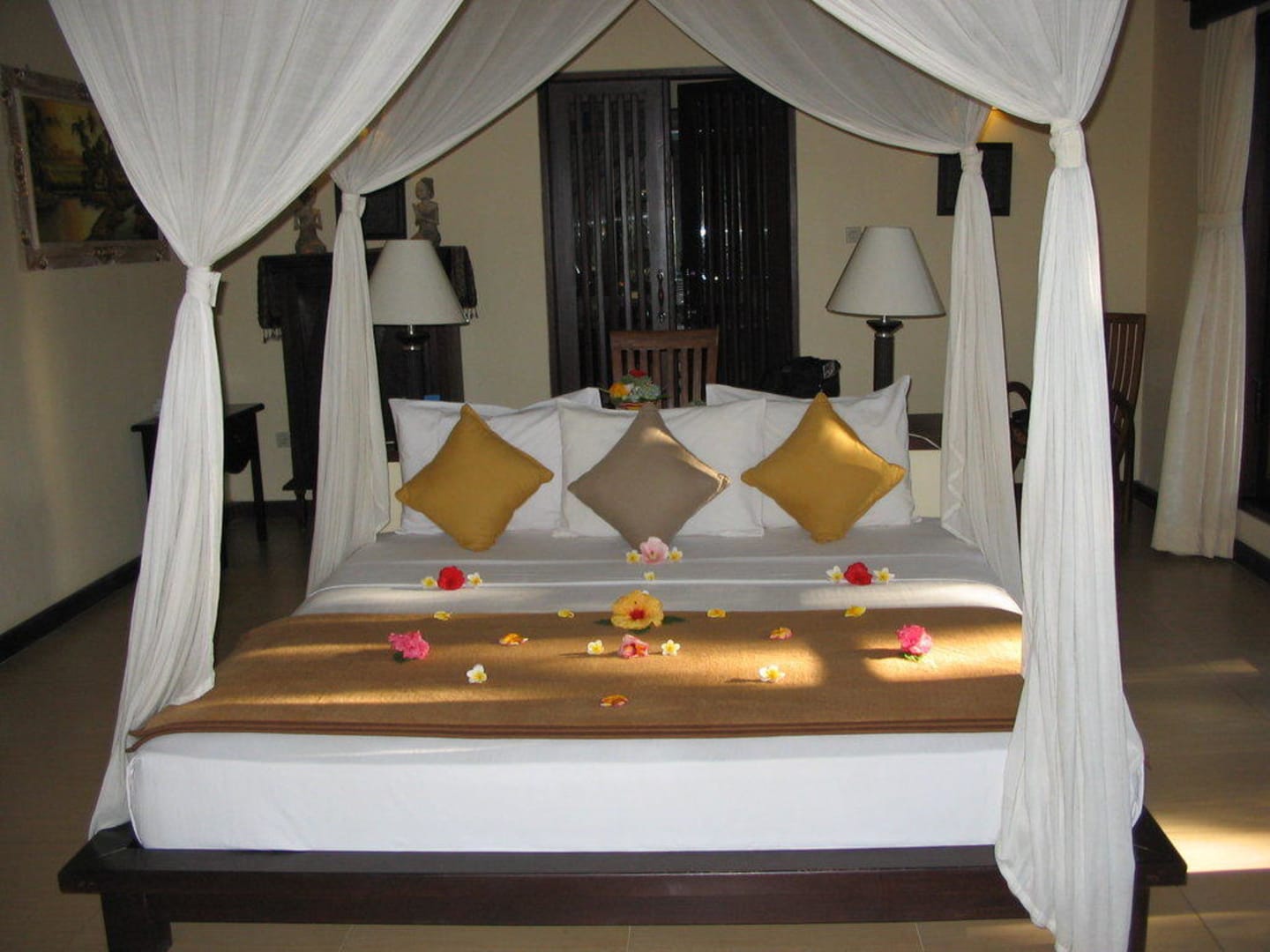 Amertha Bali VillasHübsch dekoriertes Bett nach dem Zimmerservice...jeden Tag wurde das Bett anders geschmückt.