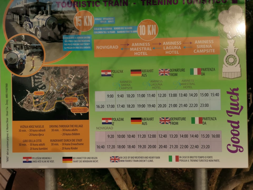 Fahrplan Bimmelbahn vom Hotel nach Novigrad