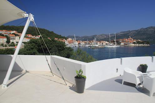 Bar (vlevo restaurace) s výhledem na Korčulu