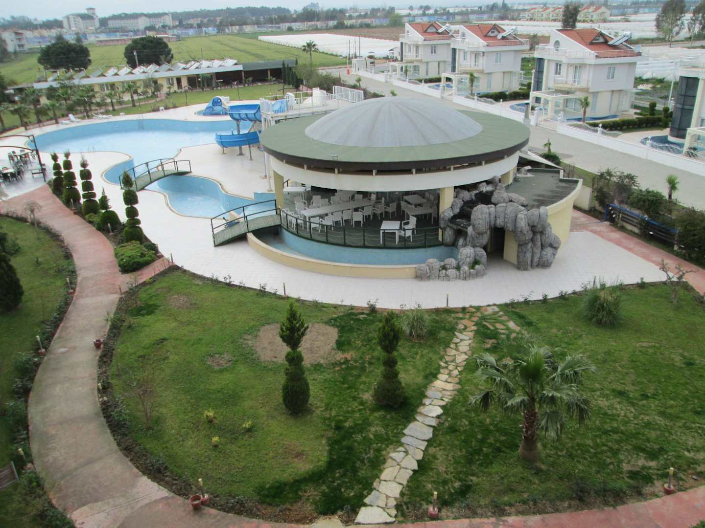 Blick zum Pool aus dem Zimmer