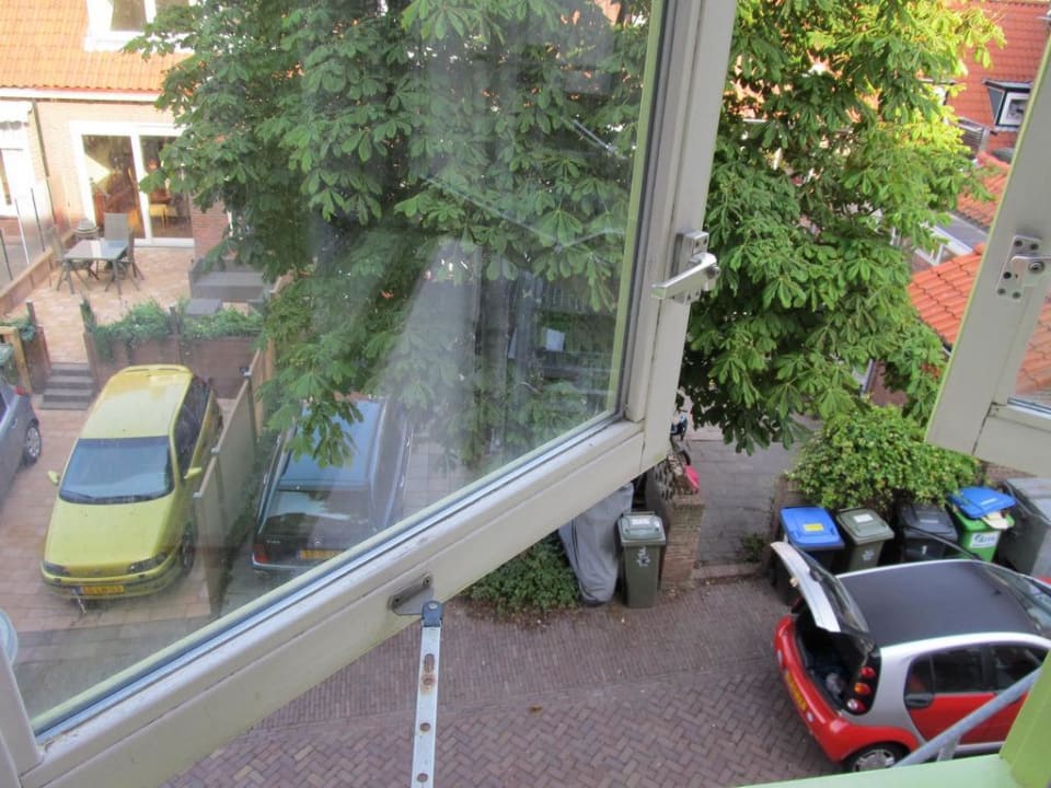 Ein schöner HinterhofMülltonnen, Ladegeschäft, Lüftungsrohre...eine Aussicht, wie man sie sich für den Urlaub wünscht...