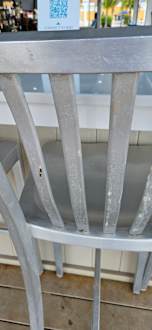 Vogelkot aus Stühlen an der Strandbar