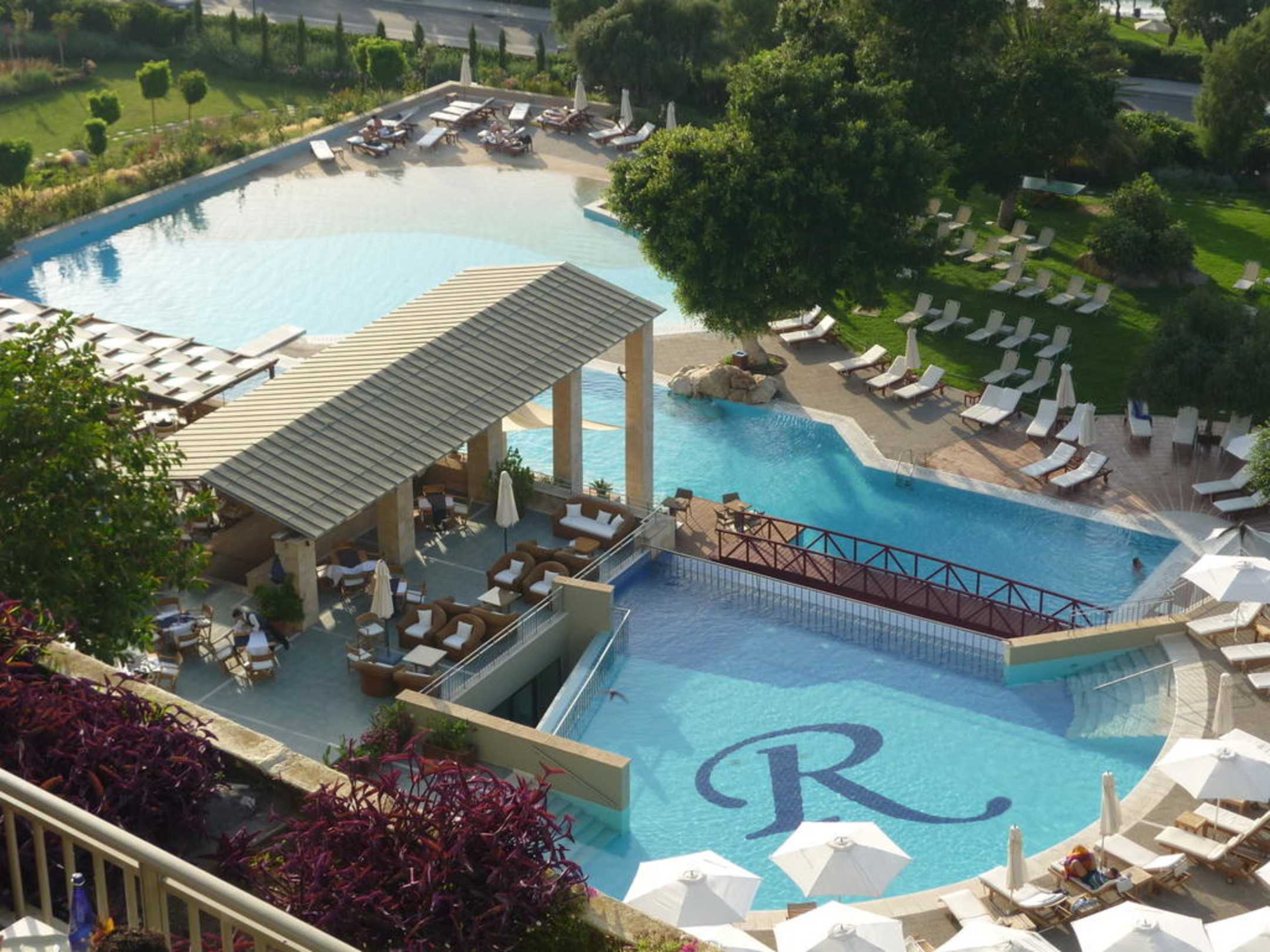 Ausblick vom 11. Stock zu den Pools