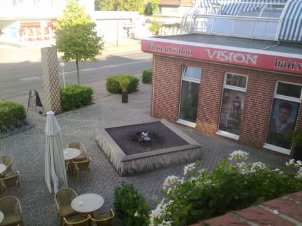 Ausblick auf die Straße und Terrasse