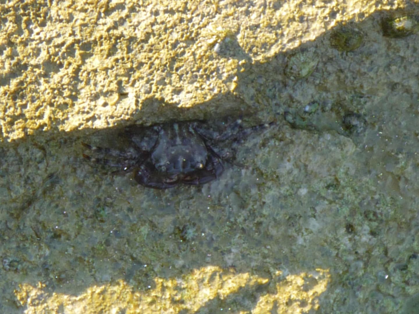 Krebse zwischen den Steinen unter dem Steg versteckt