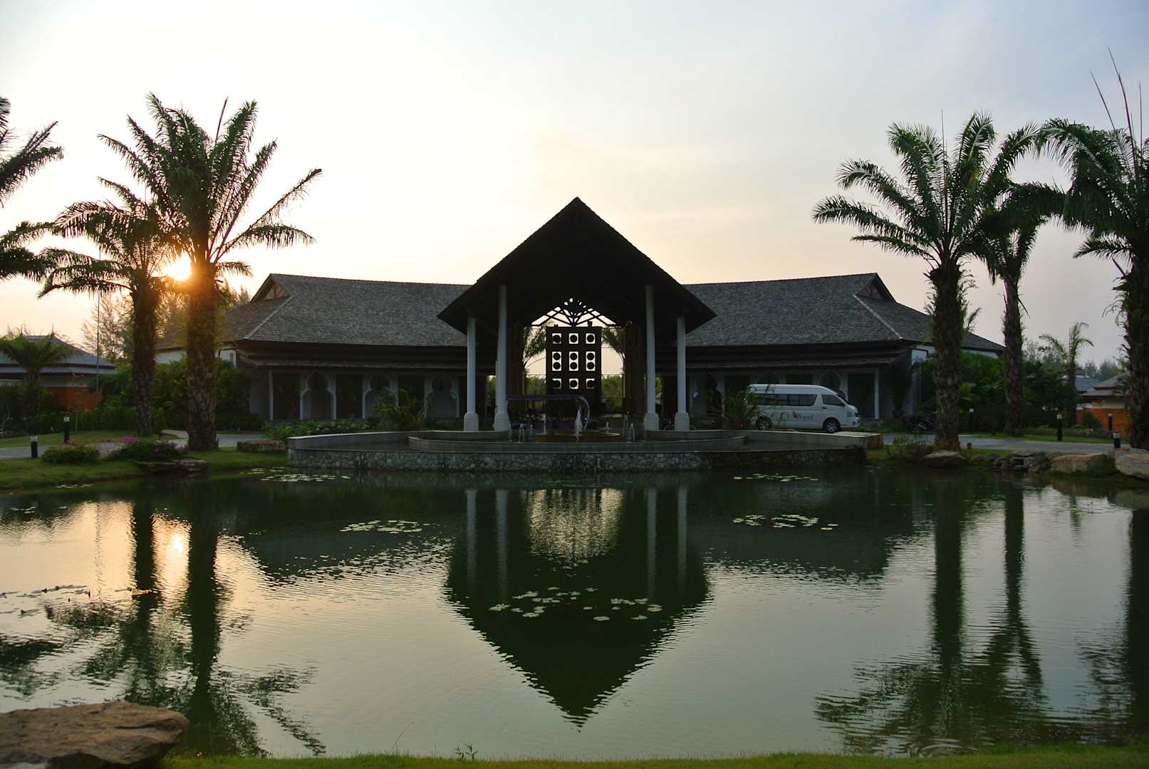 Sonnenuntergang am Hoteleingang