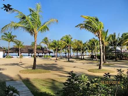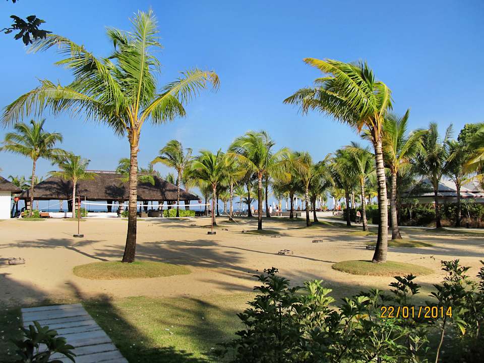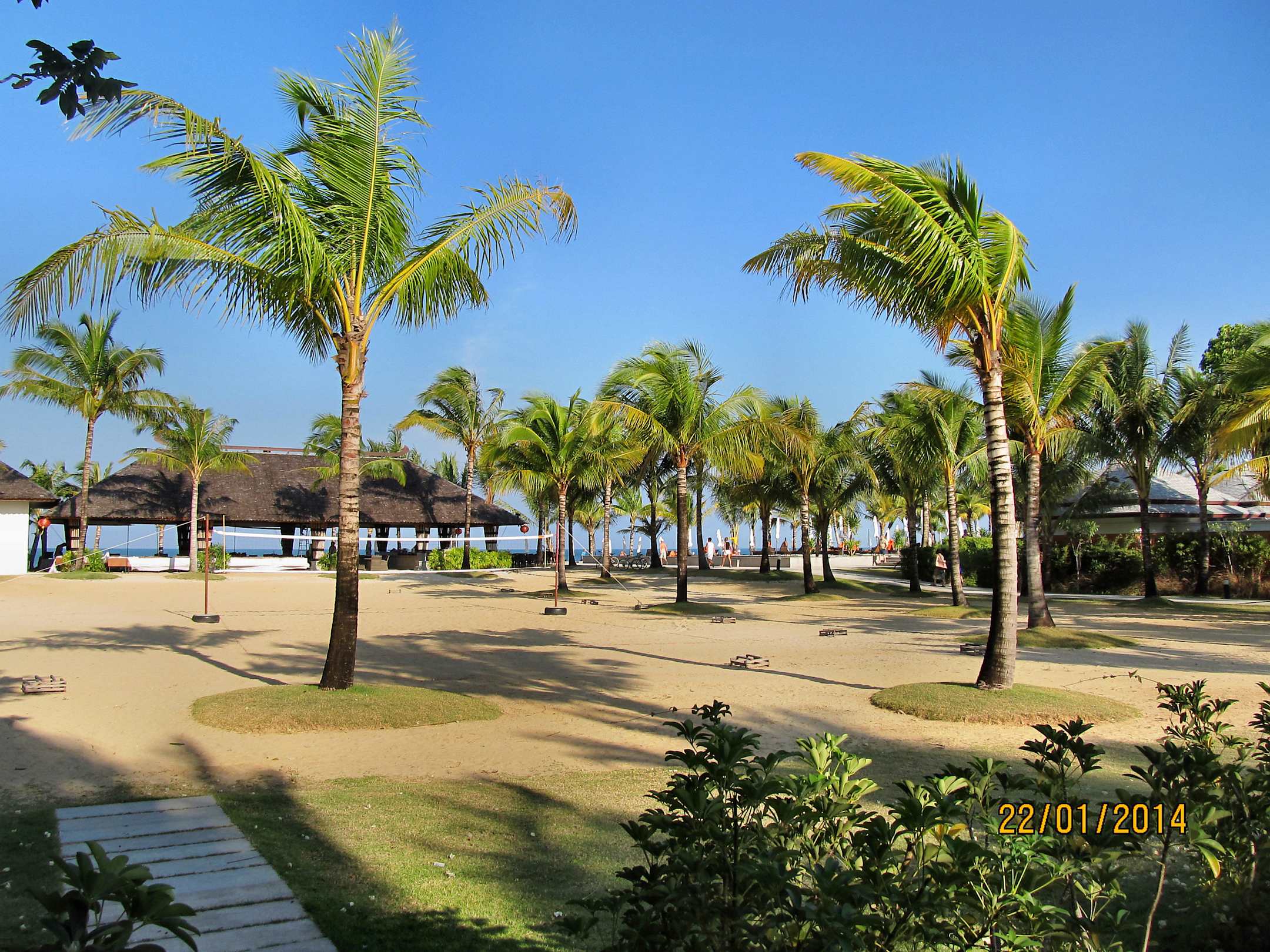 Blick von Frühstücksterrasse zum Beachrestaurant