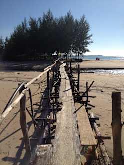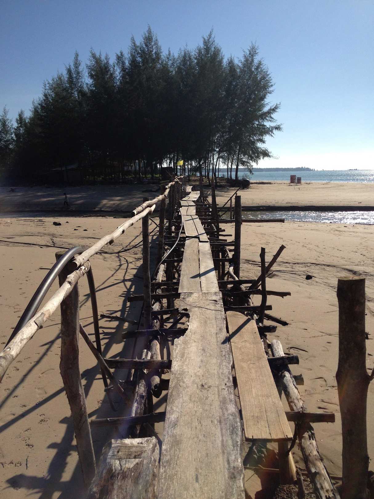 "Brücke" bei Flut - am Strand rechts.