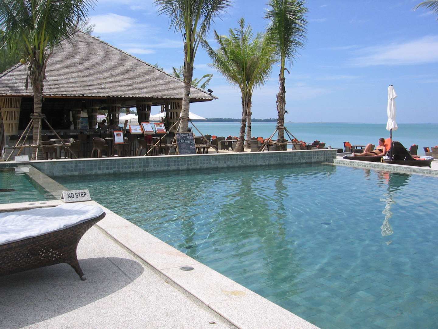 Im Hintergrund das Strandrestaurant und Bar