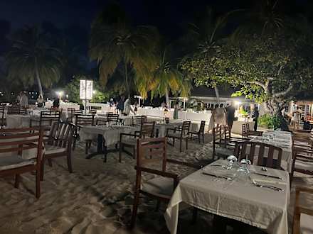 GastroLandestypischer Büffetabend welcher komplett am Strand aufgebaut war und auch die Tische und Stühle wurden am Strand für die Gäste hergerichtet.