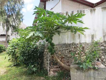 Große Papaya zwischen den Bungalows