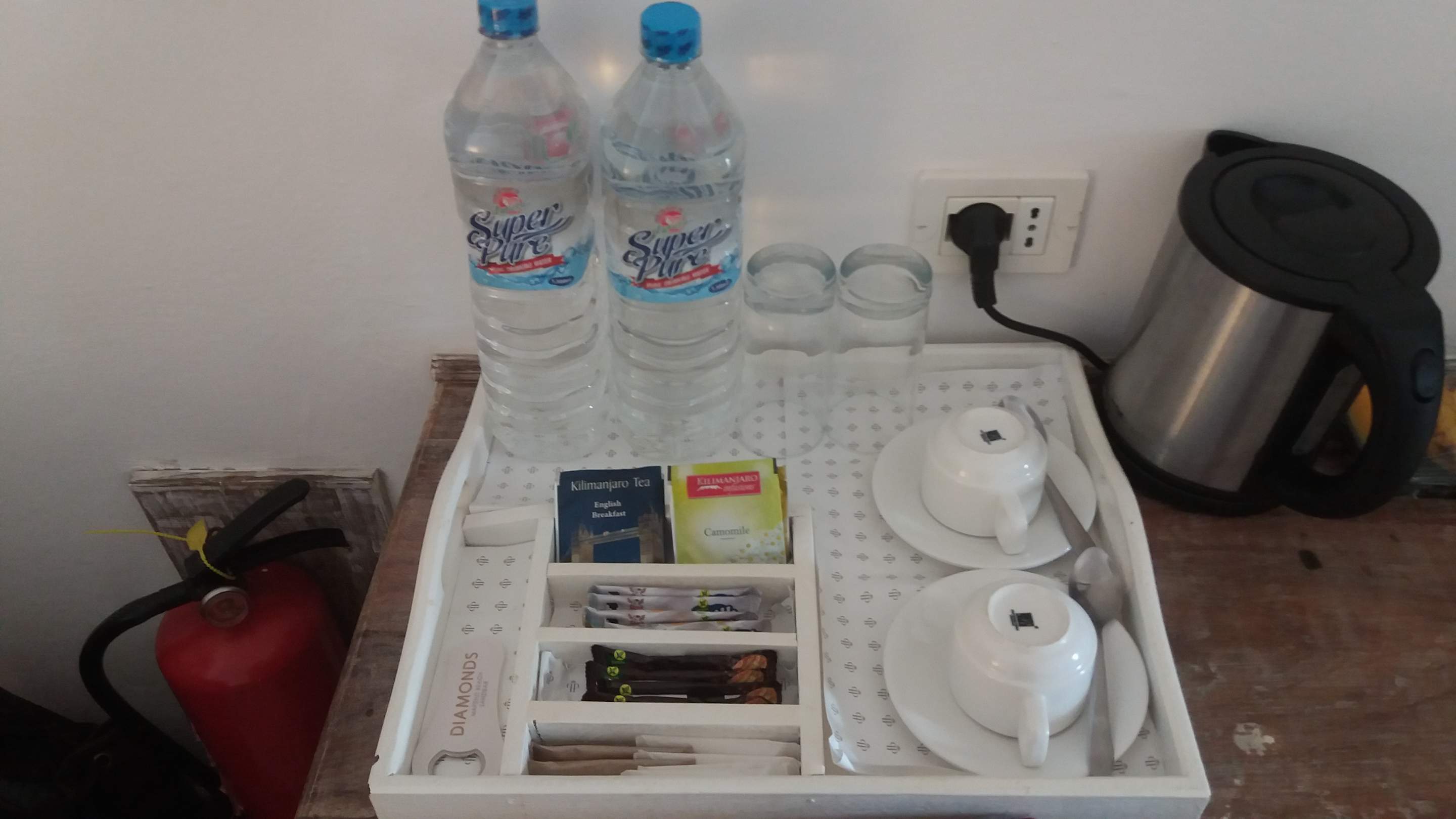 Wasser, Tee, Kaffee ist alles im Zimmer