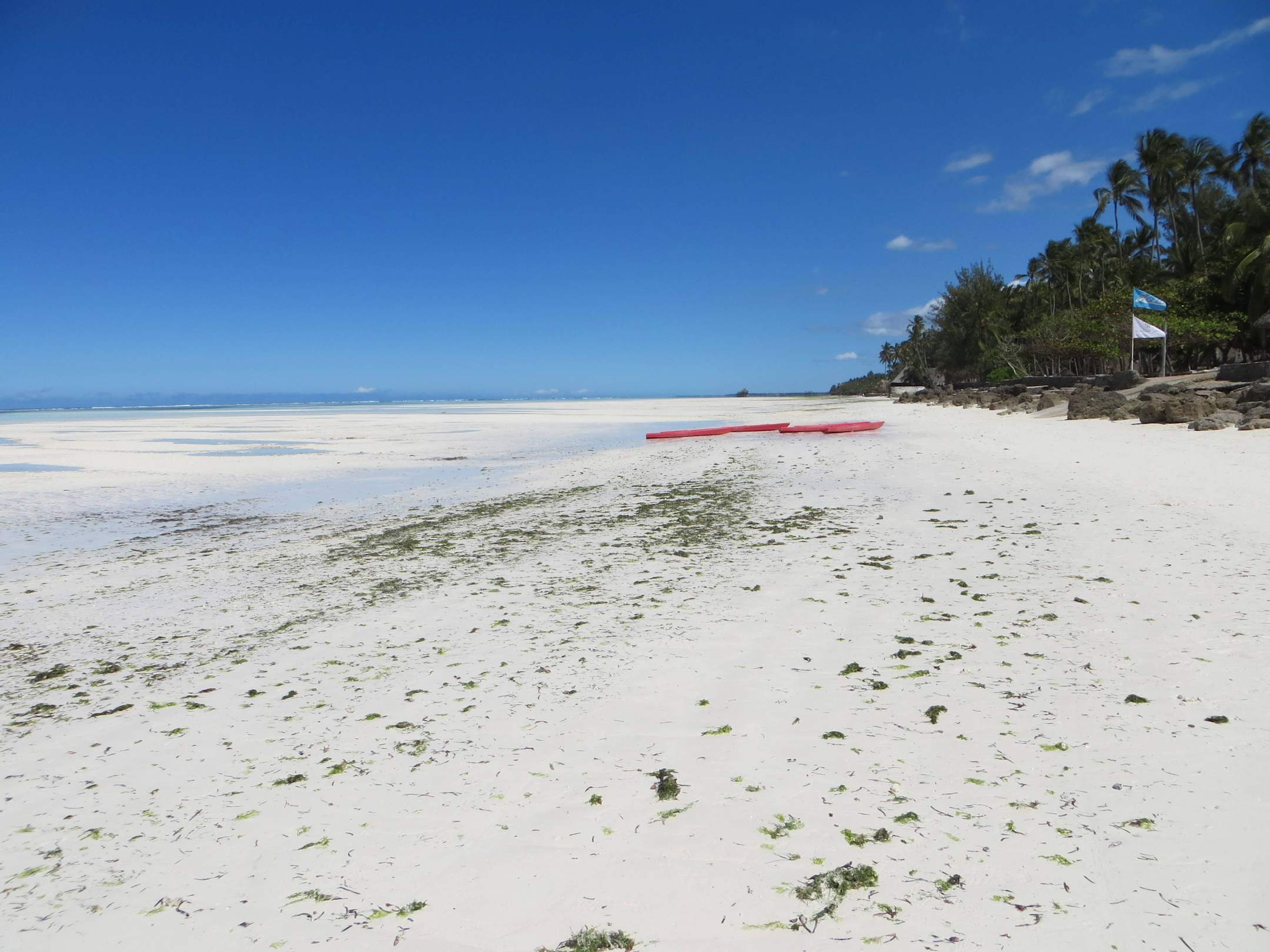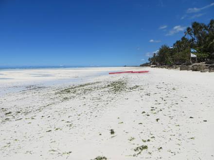 Der Hotel-Strand links und rechts bei Ebbe