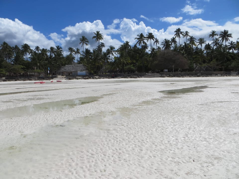 Der Hotel-Strand links und rechts bei Ebbe