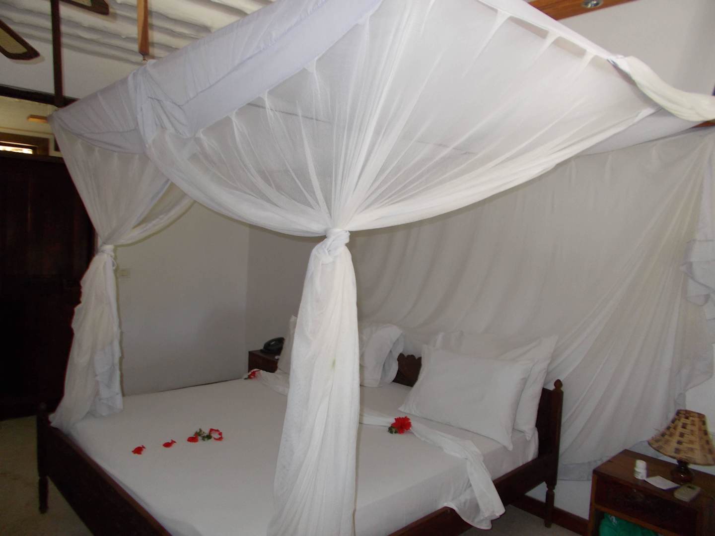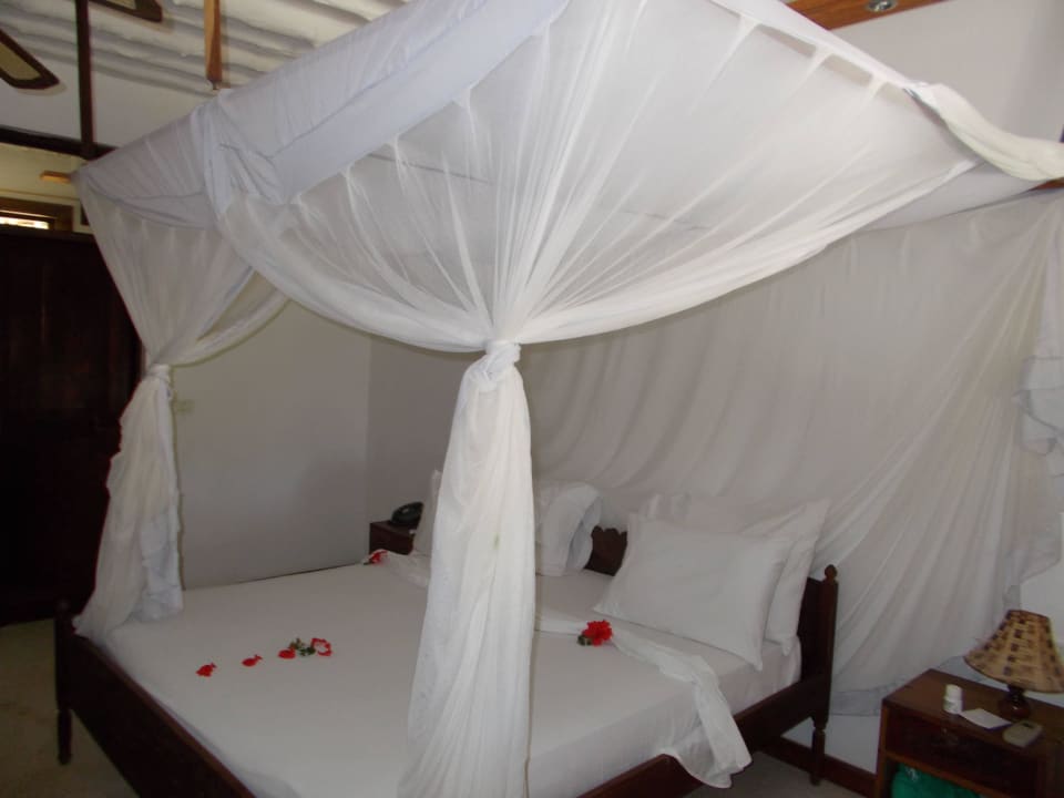Bett mit Deko und Moskitonetz