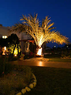 Die Palme im Garten mit Beleuchtung