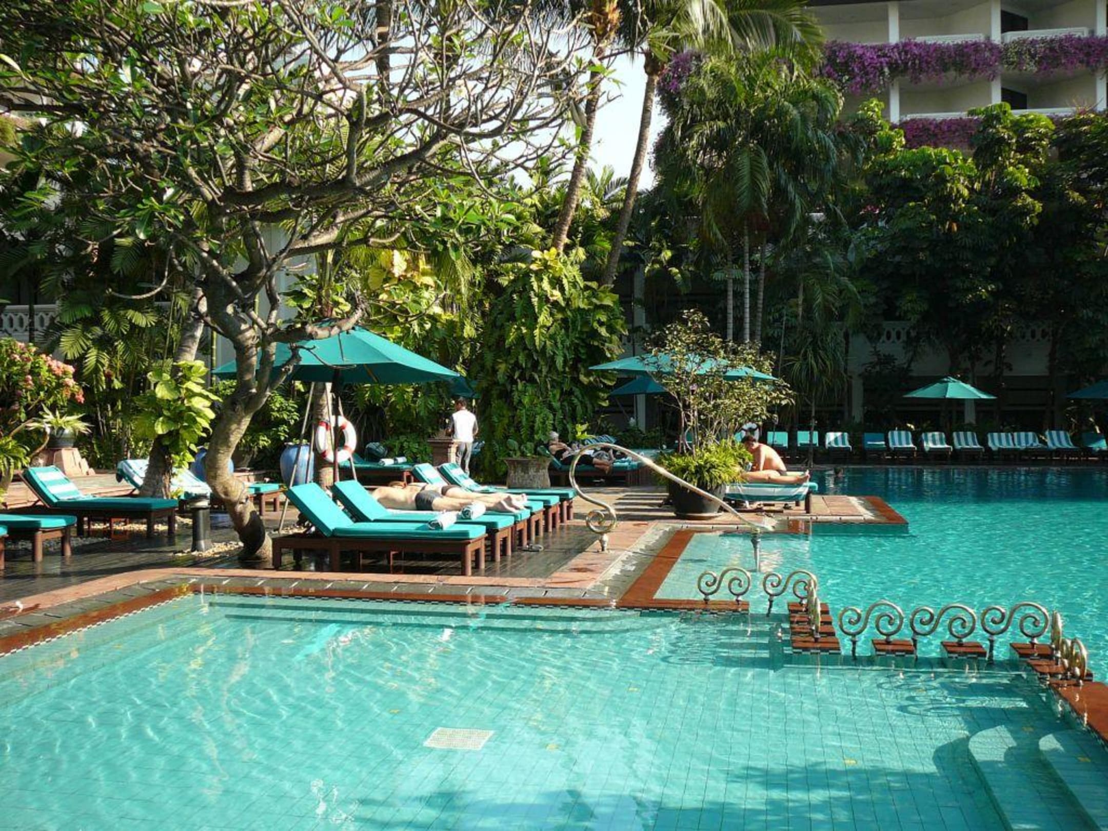 Am Pool im Bangkok Marriott Riverside;