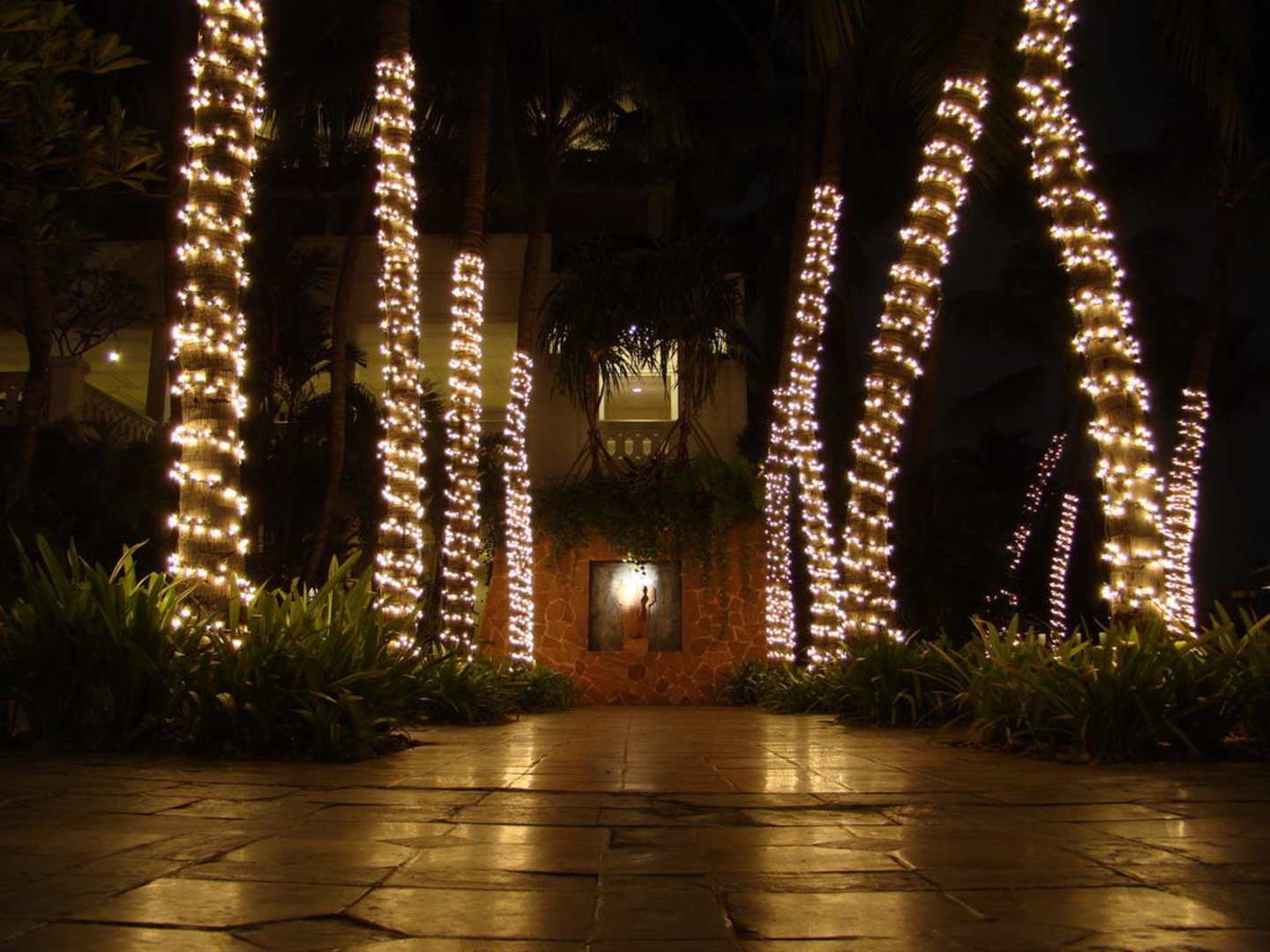 Gartenanlage bei Nacht