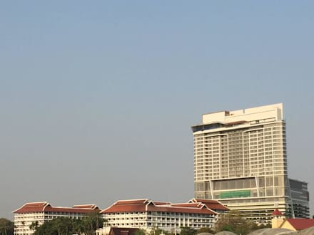 Hochhausklotz überragt Hotel