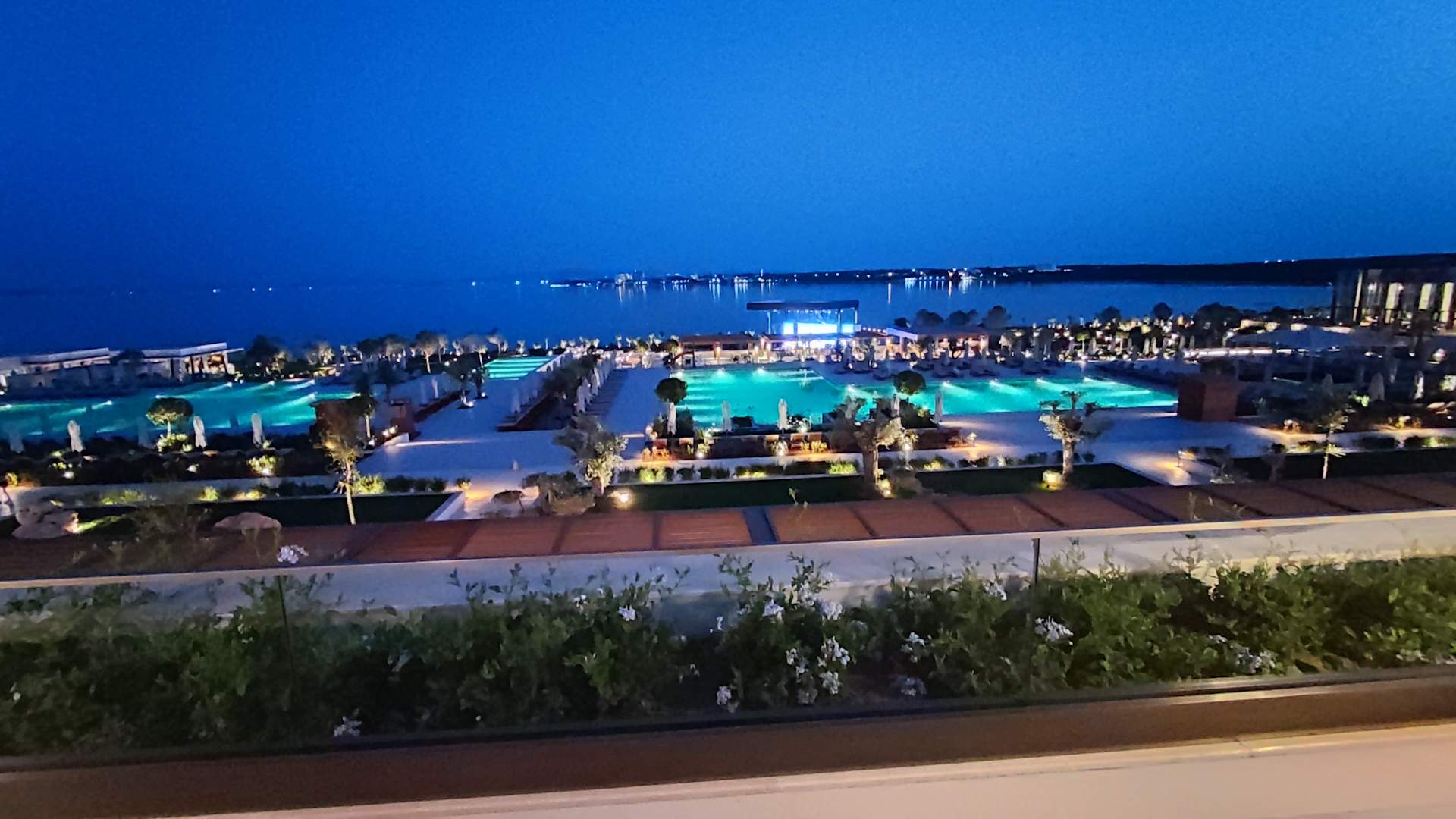 Aussicht von der Aussenterrasse der Lobbybar bei Nacht