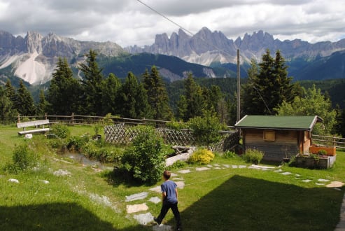 Der Garten mit Fischteich und Dolomitenblick