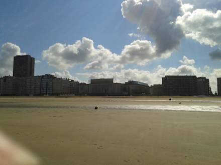 Das Hotel vom Strand aus. Der Blick vom Strand zum Hotel. Die Umgebung ist nicht sehr schön in Oostende !