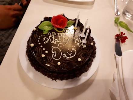 Der Geburtstagskuchen (kann man einpacken lassen und aufs Zimmer mitnehmen) - war sehr lecker