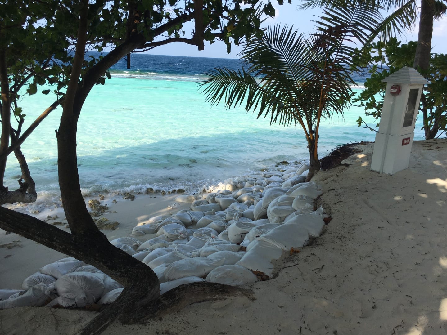 Sandsäcke an der Ostseite sollen den Abbau des Strandes verhinden.