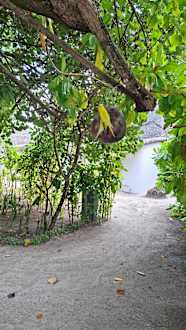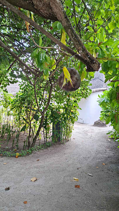 Weg zum Restaurant/Bar/Rezeption mit ganz vielen Wellensittichen.