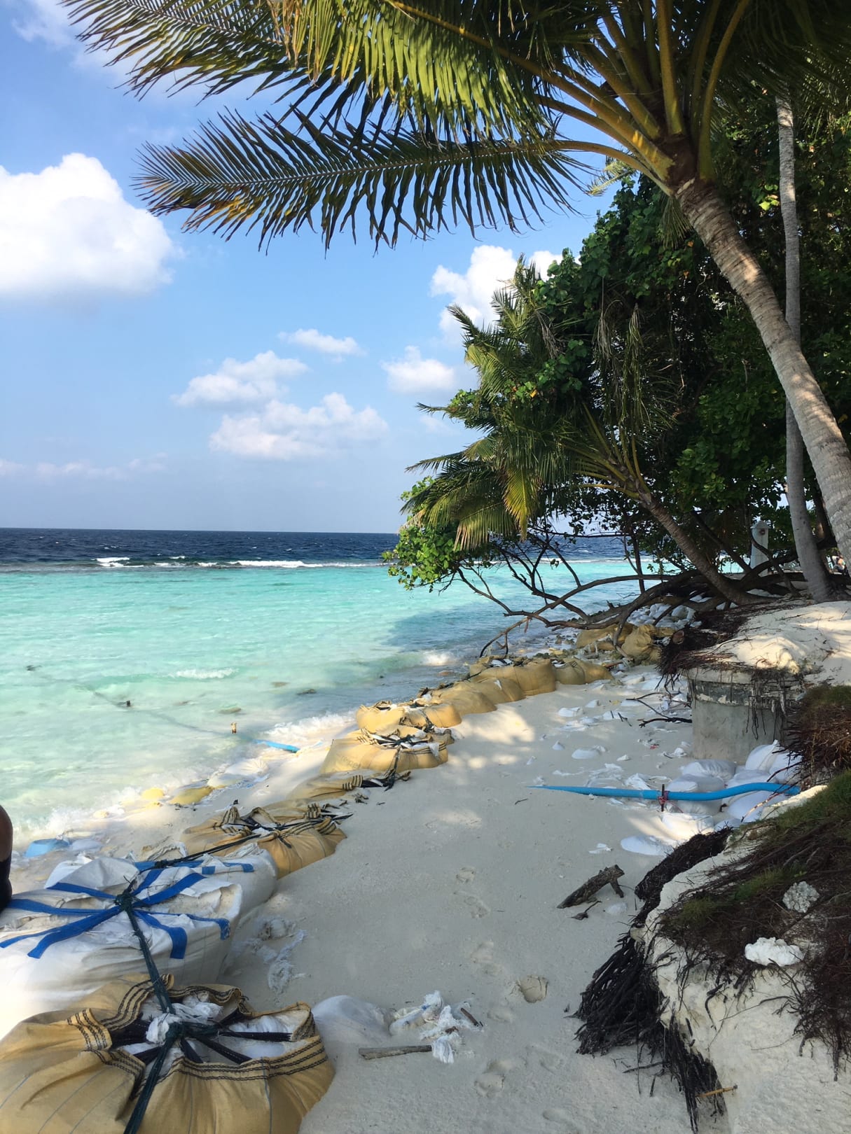 Sandsackbarrieren an der Ostseite der Insel
