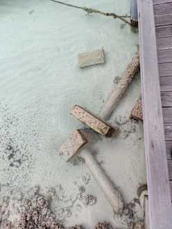 Unterm Steg liegen im Wasser Betonpfeiler!!! Hübscher Anblick!!!