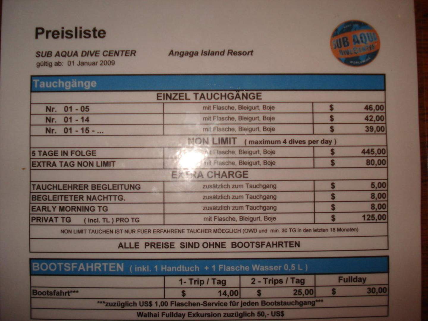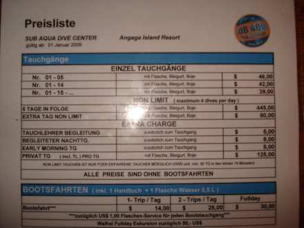 Preisübersicht Tauchbasis