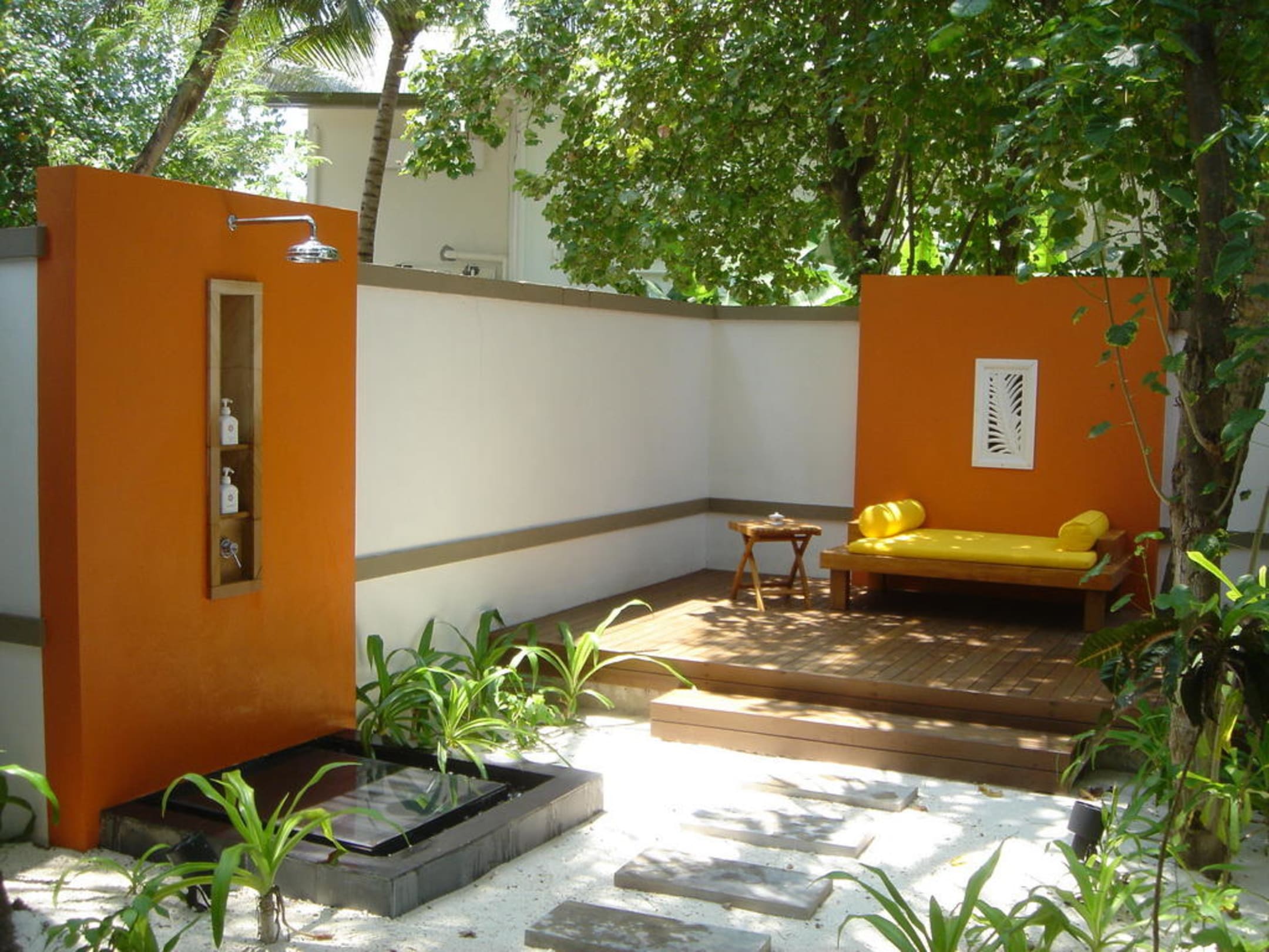 Inner yard of Bungalow at Valavaru IslandIn the yard of your bungalow you will find perfect private atmosphere