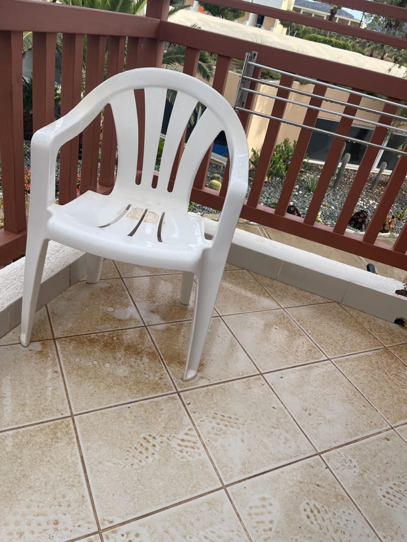 Der Balkon nach einem Regentag. Wurde erst am 2. Tag gesäubert