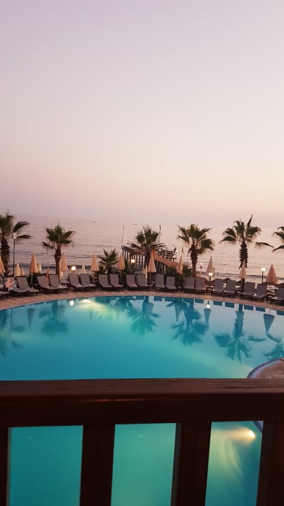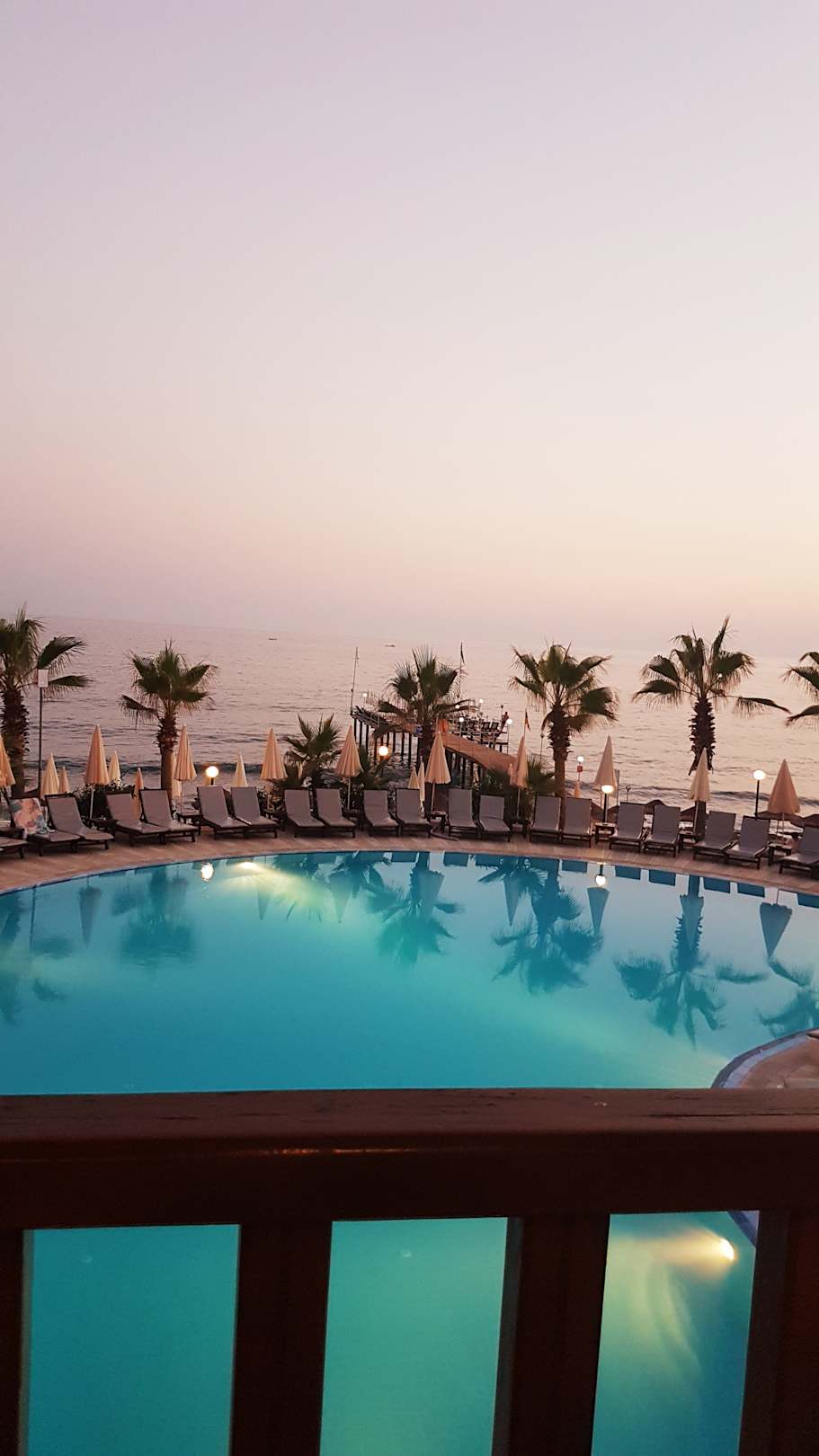 Ausblick vom Abendbrot Tisch übern pool
