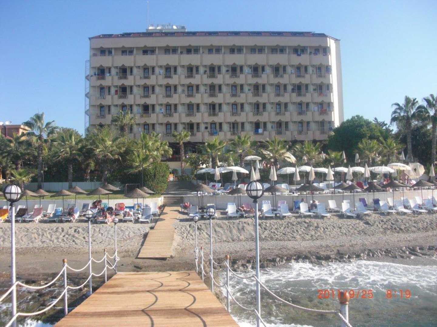 Blick vom Strand zum Hotel