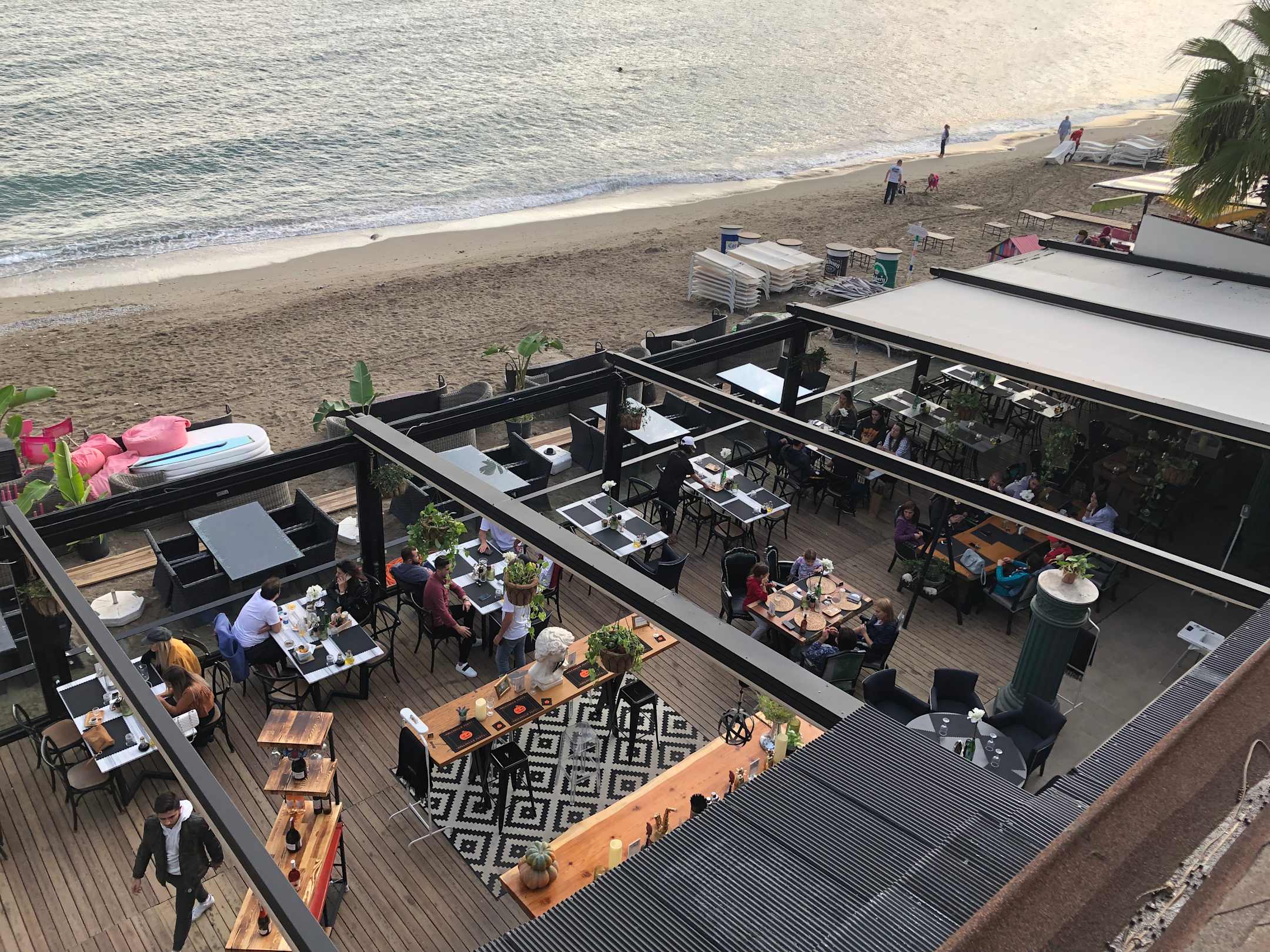 Restaurant-Terrasse vom Balkon aus