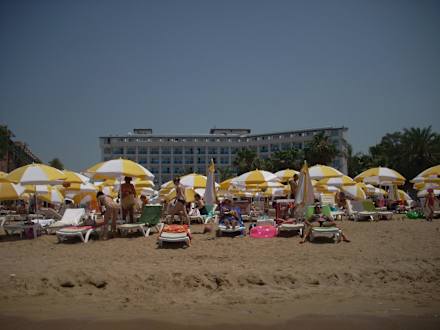 Widok na plażę i hotel od strony morza