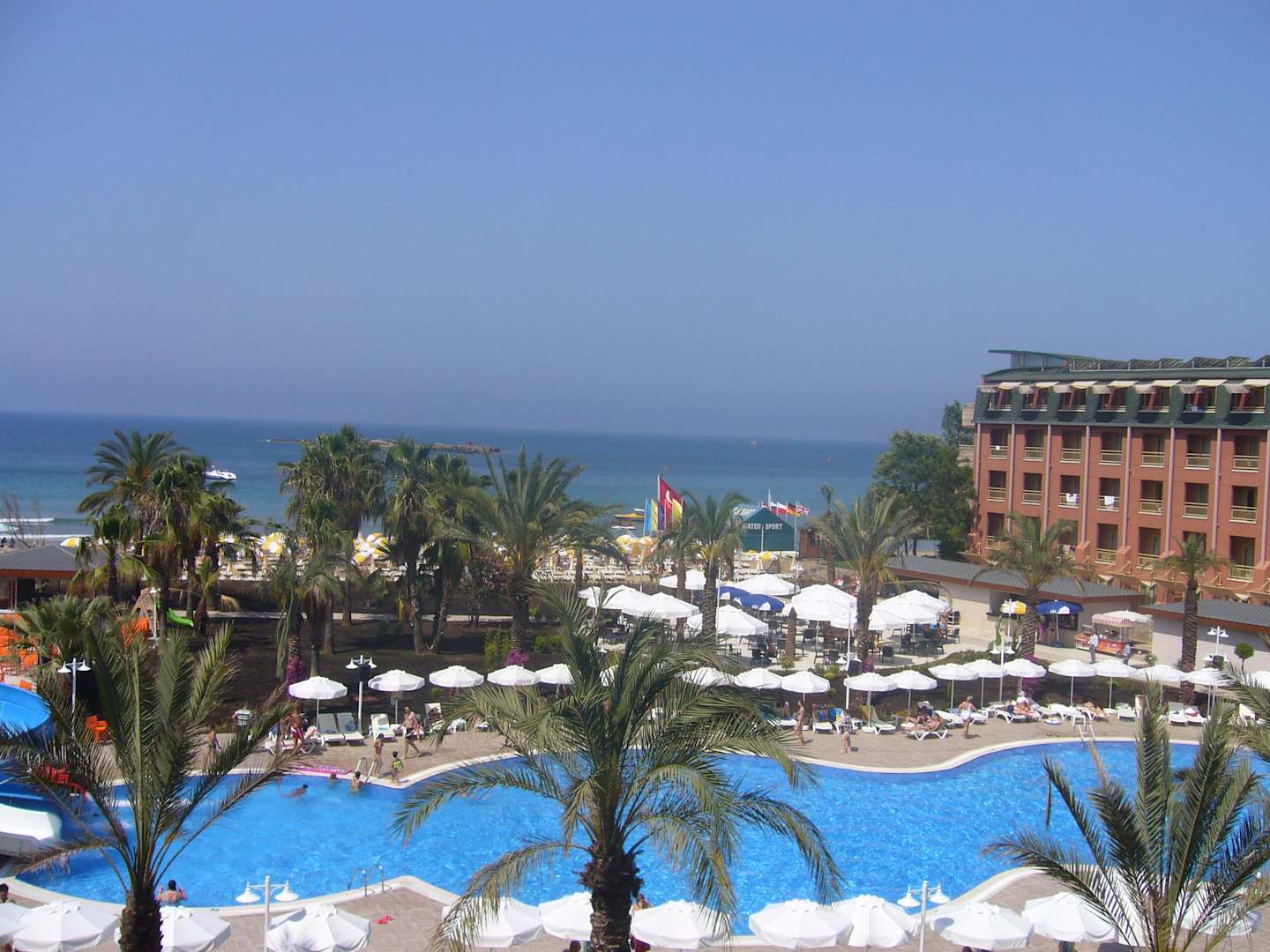 Widok z balkonu na basen,plażę i morze